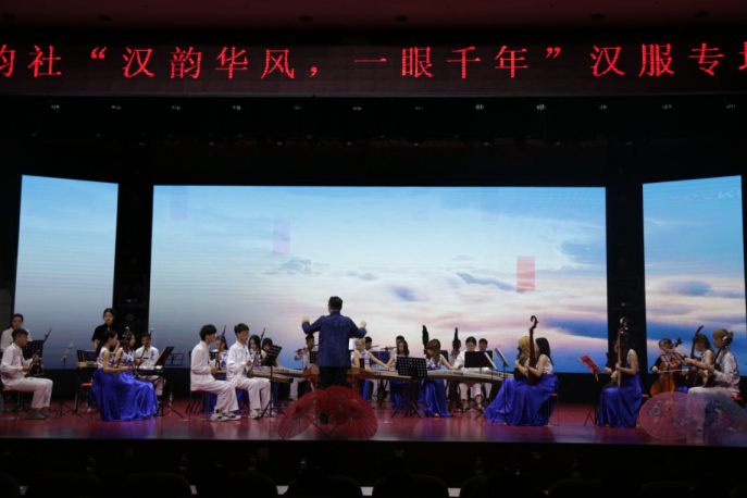 本网讯6月6日电(通讯员梁威)“秃衿小袖调鹦鹉,紫绣麻霞踏哮虎”,汉服一直在人类衣饰发展史上散发着最璀璨的光芒,是汉民族传承千年的传统民族服饰,是最能体现汉族特色的服装。为继承和发扬中华民族传统汉服文化,让同学们感受优秀传统文化的魅力6月5日晚昔玦汉韵社在毕业大厅举办“汉韵华风,一眼千年”汉服专场晚会。昔玦汉韵社使yl6809永利集团文化类社团之一,目前挂靠在yl6809永利官网集团。出席本次活动的领导有yl6809永利官网集团党委书记张良老师、党委副书记李东生老师、团委书记董博老师以及近700名校内师生观众。