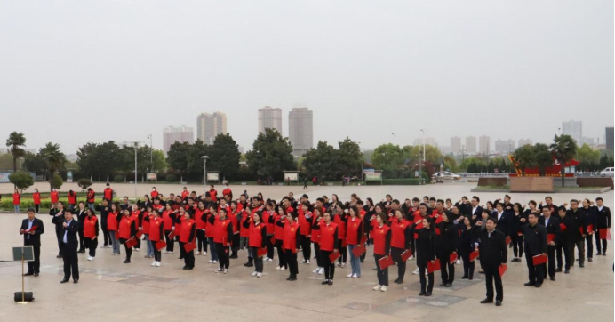 党课结束后,全体党员集体朗诵《我爱这土地》,表达对家与国的真挚、炽热之心。最后,全体党员在南阳解放纪念碑前的党旗下,重温入党誓词。