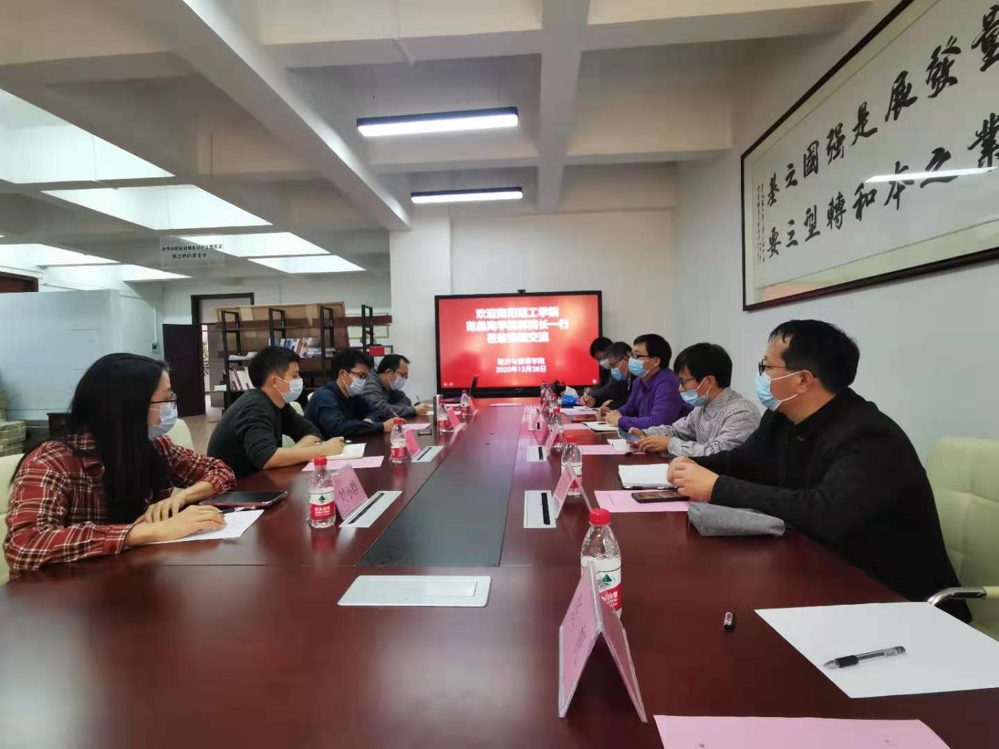 11月28日下午,考察组一行到东莞理工学院,与经济与管理学院黎伟副院长及相关系主任进行座谈,双方围绕着“双一流”建设、学生分类培养以及相关课程设置等方面进行了深入的探讨。