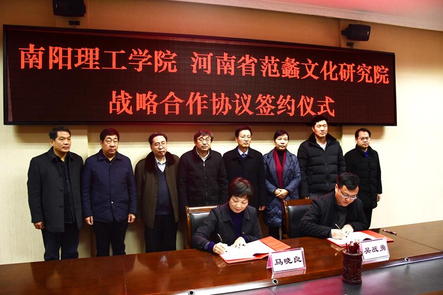 本网讯(特约记者 范荣华)12月29日,我校与河南省范蠡文化研究院在第一会议举行战略合作协议签约仪式,校长安士伟、郑州大学教授袁延胜、南阳市宛城区区委书记刘中青分别致辞,副校长肖泽昌主持。南阳市宛城区区委常委、宣传部长李淑林,宛城区政协党组副书记、副主席、河南省范蠡文化研究院负责人马晓良,yl6809永利官网集团党委书记张良、院长吴战勇,河南省范蠡文化研究院、校相关部门领导和yl6809永利官网集团教师代表共30余人出席了签约仪式。