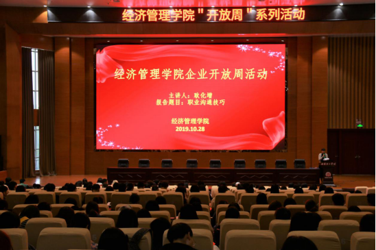 (本网讯田进军)10月28日至11月3日,由经济管理学院主办的“面向企业开放周”活动在我校第三报告厅举办。来自华为、苏宁电器、上海平安普惠、上海链家、深圳链家、中联水泥、中信证券、豫西工业集团等多家知名企业的负责人和具有丰富创业经验的校友走上讲台,为2020届毕业生送上了16场精彩的学术报告。