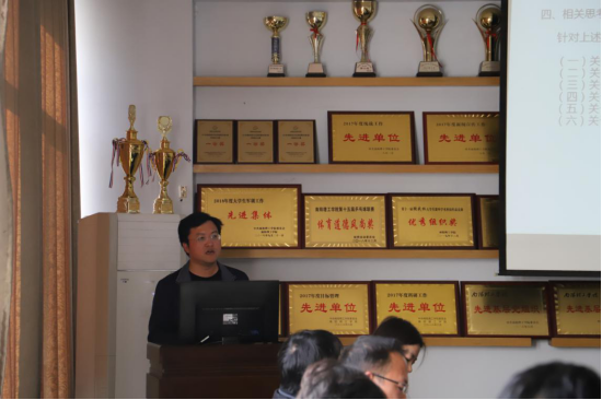 吴战勇首先从中国共产党人的初心和使命讲起,激励全体教师党员不断向前迈进,牢记“为党育人,为国育才,培育社会主义建设者和接班人”的初心和使命。他要求,教师党员须完成坚持正确办学政治方向、建设高素质教师团队、形成高水平培育体系这三项基本工作,随后,他根据这三项基本工作结合电商学院实际情况分别提出了培养解决复杂工程问题能力、建设金课、实施应用型教程、开展教师科研以及专业发展六个方面的思考并对这六方面进行具体阐释。