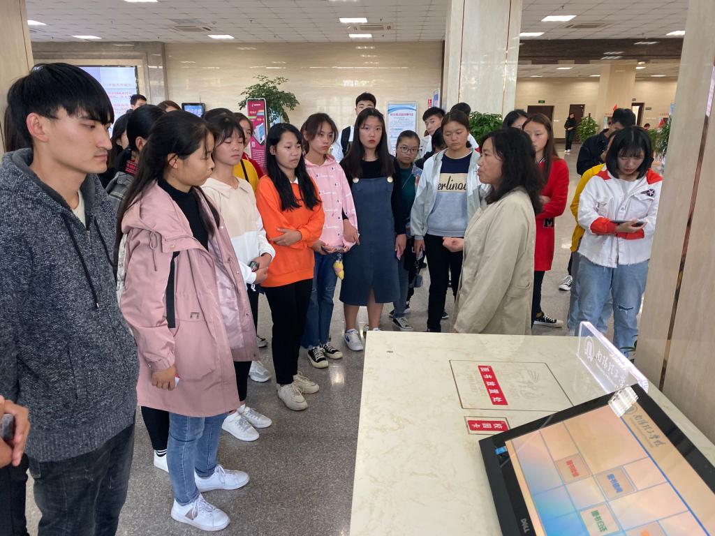 参与学生在图书馆管理员的带领下开始熟悉图书馆。管理员首先向全体学生讲解图书馆概况以及图书馆开放时间、借阅册数、图书馆内自助设施的使用等相关事宜,为学生提供图书馆馆藏资源及利用介绍,相关专业文献资源推荐等图书馆基础服务。参与学生认真听取管理员的介绍,仔细了解图书馆的相关设施。