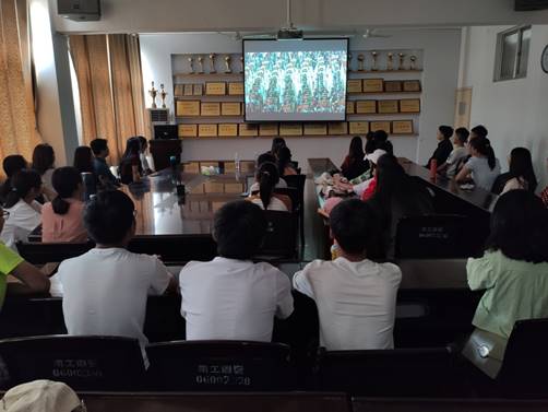 十时整,习近平总书记等党和国家领导人登上天安门城楼,师生们在屏幕前与全国人民共同迎来这激动人心的时刻。随着李克强总理的号令,全体师生注视着天安门广场上五星红旗冉冉升起,齐声高唱国歌。
