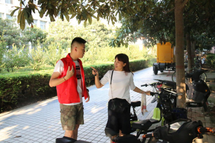 值得一提的是,在下午16时左右,一位我院学生家长来到新生报到处寻求帮助。原来,她的孩子在暑假期间不慎腿部受伤,由于开学季校园内人数众多,行动不便的母女俩未能及时登上校园公交,于是学生在校门口等候,家长则前来我院报到处寻求帮助。在了解情况后,我院许向宇同学立刻将其电动车借给了该家长。由于电动车载员有限,出于安全考虑,志愿者们放弃了随家长一同接送新生的想法。