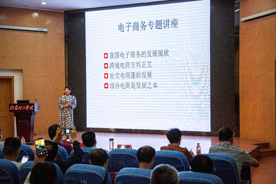 报告会上,刘俊娥教授从我国电子商务的发展入手,详细阐述了跨境电商及社交电商现状未来发展的趋势,并结合对南阳市的实地走访,指出南阳的电商下一步的发展路径。