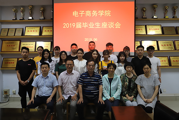 6月14日,电子商务学院在9号教学楼304会议室召开2019年毕业生座谈会,我校党委委员、统战部部长于元明,电子商务学院院长王一平、党总支书记逯忆、党政办主任张清、团学办主任白林驰、国际经济与贸易教研室主任姬会英、国际商务教研室主任吕晓军、15级国际经济与贸易专业导师张永梅出席,毕业生及在校生代表20余人参加。座谈会由逯忆主持。