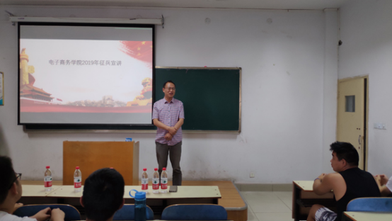 本网讯(通讯员/左伟)为响应国家征兵工作号召,积极落实有关征兵会议精神,激发我院适龄大学生参军热情,6月11日,电子商务学院在九号教学楼503教室举办2019年征兵工作宣讲会。电商学院党总支书记逯忆,武装专干赵杰出席本次会议。电子商务学院18级全体适龄男生参加。