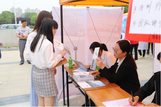 本网讯(通讯员/尹亚琦)为了切实加强毕业生与用人单位的沟通,更好地为双方搭建双向选择的平台,积极向社会输送应用型人才。5月15日,电子商务学院联合音乐学院、文法学院、经济管理学院、生物与化学工程学院、软件学院、数学与统计学院、艺术设计学院、计算机与信息工程学院、电子与电气工程学院在我校齐贤广场举办2019年春季大型十院联合招聘会。千峰科技,中国人寿、链家集团、牧原集团、想念集团,中信储蓄、浦发银行等来自北京、深圳、上海、郑州、南阳等地共29家企业前来招聘。提供就业岗位300个,涉及学院专业对口的岗位有市场营销、国际贸易、电子商务等。电子商务学院党总支书记逯忆、就业专干赵杰亲自到场指导毕业生应聘,百余名学生前来应聘。