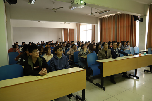 曹雨凭借在俄罗斯多年的学习与工作经验,以及对中俄贸易形势的深度了解,从俄罗斯的民俗风情、经济形势、与当今中国的贸易往来等方面具体介绍俄罗斯的国家情况,进一步增加学生对外贸工作的了解,丰富学生的课外知识。曹雨指出,"一带一路"倡议是我国新一轮扩大和深入开展对外开放政策、推动世界经济增长、开创地区新型合作的重大举措,同时也是我们电子商务学院学生珍贵的就业机遇。他鼓励学生能在将来走出国门,争当具有国际视野的人才。最后,曹雨还与学生共同交流俄语,现场气氛十分热烈。