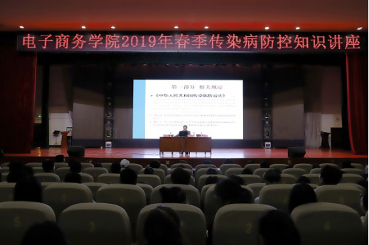 本网讯(通讯员/李香鲜)为了提高学生健康知识水平,降低传染病在学院的发病率,3月20日电子商务学院特邀我校附属医院院长郜中明,医生孙艺菲在我校毕业大厅举办春季传染病防控知识讲座。电商学院18级辅导员赵杰出席讲座,300余名学生到场聆听。