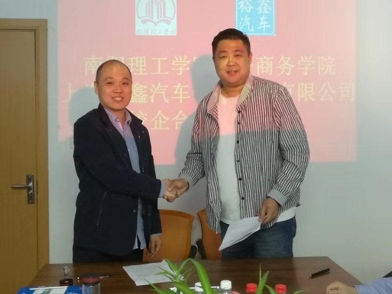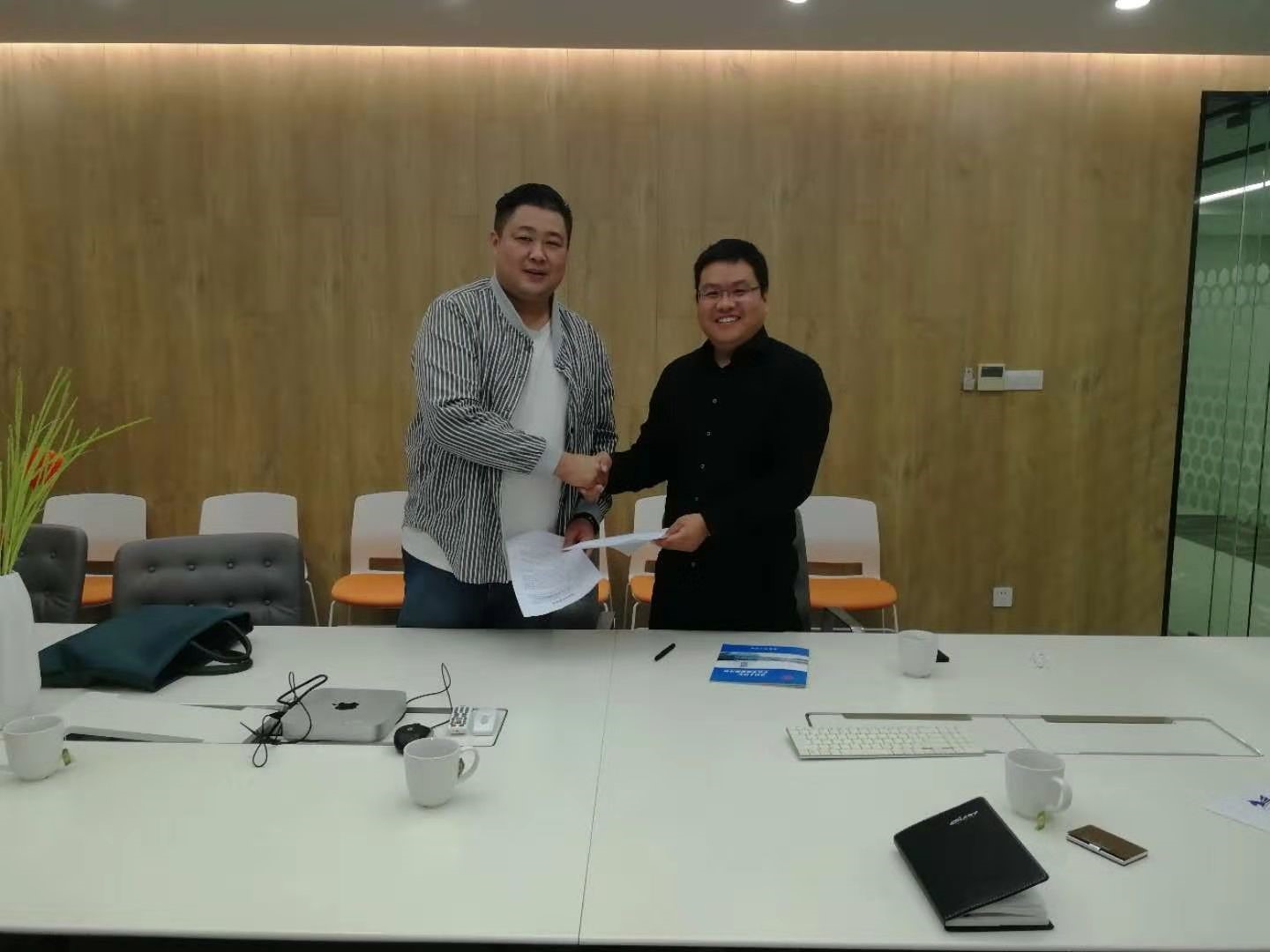 最后,赵杰代表电子商务学院与两家校友企业签订校企合作协议,聘请新毕业校友黄宏玮、于太坤为2018届上海校友联络员。