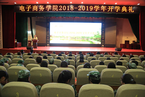 本网讯(通讯员/刘紫君)9月18号,电子商务学院在小礼堂举办2018-2019级开学典礼。电商学院院长王一平,党总支书记逯忆,副院长郭永奇,团学办副主任赵杰,15级辅导员张卓娅,17级辅导员张雨爽,18级辅导员李超,各教研室主任出席典礼,在校生代表,全体2018级新生参加典礼。典礼由逯忆主持。