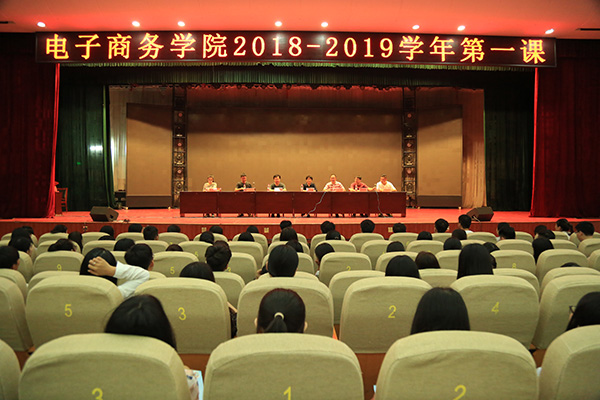 本网讯(特约记者/赵杰通讯员/郎梦鸽)新学年新学期开学,意味着新的开始、新的起点、新的希望。为教育引导学生时刻牢记以理想信念为成长基点,以学习为第一要务,以提升综合素质为主要目标,为新学年新学期开好头、起好步。9月2日晚,电子商务学院在校毕业大厅举办2018—2019学年秋期“开学第一课”。电子商务学院院长王一平,党总支书记逯忆,副院长吴战勇、郭永奇,教务办副主任陈连山,辅导员赵杰、张雨爽出席,电子商务学院全体在校生,刚刚入学报到的2018级专升本学生参加。“开学第一课”由逯忆主持。