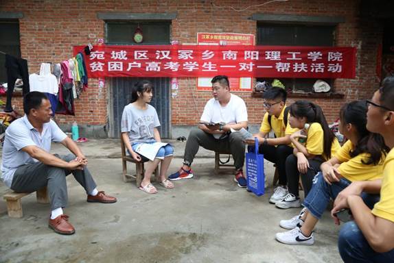 7月6日,服务队到达宛城区汉冢乡,队员们依次前往鲁梦迪、胡淼等三户贫困学子家庭,详细为同学们分析2018年报考志愿形势,如何在条件相似的学校中选择最好的,根据自身情况合理分配志愿。随队的大学生们还通过举自身的实际例子告诉下届学子们,只要努力,一切都会变好。奋斗的大学最美丽。在讲解结束后,随队队员与学子们互换联系方式,进行更长远的帮助,增予学子们学习用具。