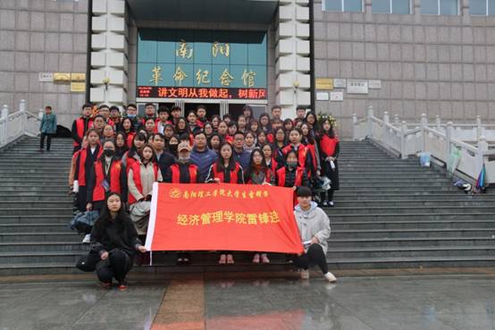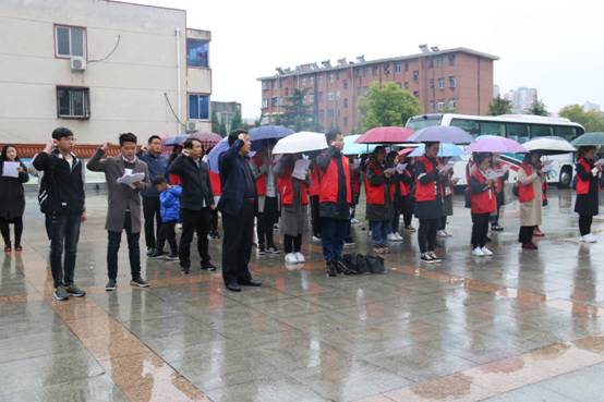 (本网讯 特约记者 田进军) “桃花红雨英雄血,碧海丹霞志士心”。4月5日,为缅怀革命先烈,弘扬爱国主义精神,经济管理学院”青年马克思主义读书会”、雷锋连等60余名师生志愿者冒雨赴南阳市烈士陵园开展祭祀和志愿服务活动。
