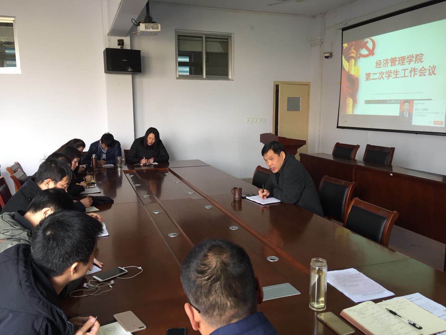 (特约记者 田进军 袁健)3月20日下午,经济管理学院在经管学院会议室召开2018年第二次学生工作会议,经管学院党委书记张良、全体专、兼职辅导员参加会议,会议由经济管理学院团学办主任田进军主持。
