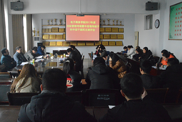 本网讯(通讯员/叶磊)1月19日,副校长陈世云带领学校考核组对电子商务学院2017年度目标管理工作及领导班子和中层干部进行2017年度综合考核。电商学院院长王一平代表电商学院班子述职,党总支书记逯忆主持汇报会,全体教职工参加。