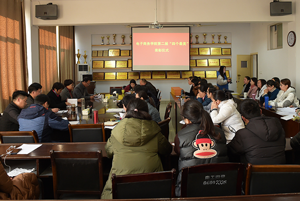 张铟为大会致辞。她表示,“四个最美”评选,选择身边人身边事,虽然没有惊天动地,但却可以真真实实的感受到,树立了模范带头作用;她指出,“四个最美”的评选有利于提高教学质量,传递精气神,凝聚正能量,同时有利于电商学院推行素质教育,营造良好的电商文化;她希望,全体教职工能够以“四个最美”为榜样,兢兢业业,微学院、为社会培养优秀人才。