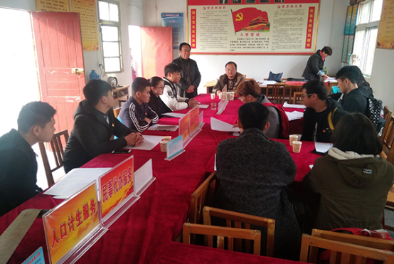 在黄庄村村委会,工作队一行和乡、村干部以“学习十九大精神,助力脱贫攻坚”为主题召开了座谈会。汉冢乡党委副书记蒋宗杰,副乡长、前黄庄村党支部书记徐国显,黄庄村党支部书记郑金瑞向同学们介绍了黄庄村的村情,分享了自己在基层工作多年特别是近年来做好脱贫攻坚工作的感受。他们认为,党的十九大报告发出了脱贫攻坚的总攻令,动员全党坚决打赢脱贫攻坚战。当前,汉冢乡黄庄村的“头等大事”和第一民生工程,就是认真贯彻党的十九大精神,把贫困群众过上美好生活的期盼作为奋斗目标,用干部的辛苦指数换取贫困群众的幸福指数,全力落实上级脱贫攻坚各项工作任务,确保贫困群众脱真贫、真脱贫,与全国全省同步实现全面小康。大学生深入农村基层进行扶贫攻坚调研,有利于同学们更加深刻地学习领会十九大精神,更加深刻地认识社会、认识农村,更加深刻地体悟到个人对国家、社会、民族的责任。