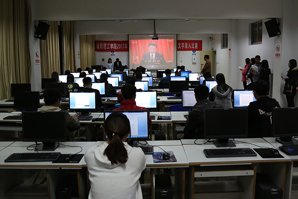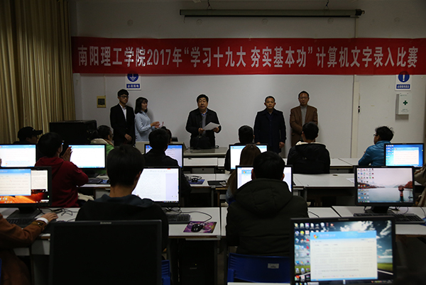 11月24日晚,我校 2017年“学习十九大,夯实基本功”大学生基本技能竞赛之一的计算机文字录入比赛在9号楼顺利举行,全校16个教学院选拔出的80名选手参加比赛,标志着为期近一个月的系列竞赛活动圆满结束。副校长肖泽昌到现场观看比赛并讲话。