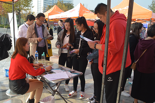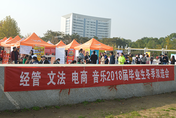 本网讯(通讯员/冯大清)为了给学生提供良好的就业平台,增加学生的就业针对性与时效性,10月27日,电子商务学院联合文法学院、音乐学院和经济管理学院在我校齐贤广场举办2017冬季招聘会。电商学院党总支书记逯忆、14级导员赵杰亲临现场指导学生应聘,百余名学生前来应聘。此次招聘会吸引近六十家企业前来招聘。