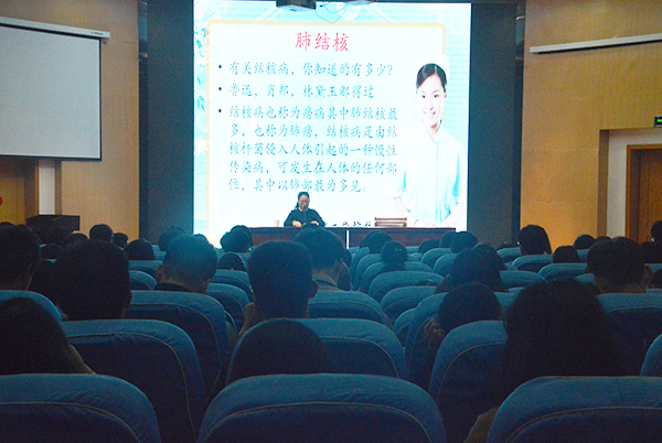 孙艺菲围绕秋季疾病预防和个人卫生两方面展开,她借助PPT向在场学生讲述艾滋病、肠道感染病、肺结核等三种常见感染病的防治知识、传染途径以及预防方法。她表示,个人卫生与身体健康息息相关,注意个人卫生不仅是对自己负责,也是对他人负责;她强调秋季是疾病的高发期,要注重个人身体健康,有病及时就医。在场学生认真听讲,仔细记录,并用热烈的掌声对孙医生的讲解表示感谢。
