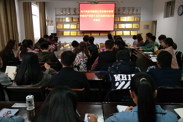 本网讯(通讯员/郭宁)10月18日,电子商务学院师生党员代表在9号教学楼304会议室集体收看中国共产党第十九次全国代表大会开幕式。电商学院团学办主任白林驰,党政办主任张清,教务办主任陈连山,14级导员赵杰,15级导员张卓娅出席会议。60余名师生党员代表到会聆听。
