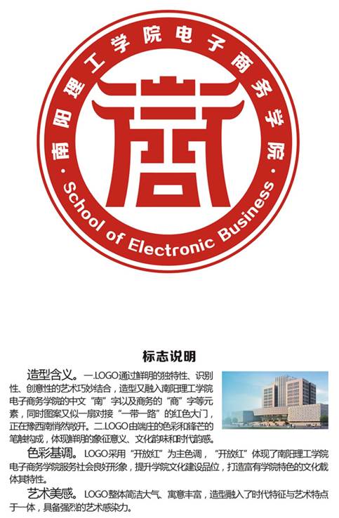 为更好地树立yl6809永利集团电子商务学院人才培养、科学研究、服务社会良好形象,提升学院文化建设品位,打造富有学院特色的文化载体,2016年6月,电商学院发布公告,面向全校师生、校友和社会各界人士征集院徽LOGO,受到校内外广泛关注,共征集到来自福建、湖北、广东、浙江、山东、河南、江苏、湖南、四川等省份以及校内设计者的作品23件,包括具象图形类、抽象图形类、英文字母组合类、中国传统文字变形处理类等各类表现形式的作品。经过网络投票、专家评审、教职工评议等一系列环节,来自杭州龙象广告有限公司,毕业于中国美术学院艺术设计学院的张逊先生作品胜出。