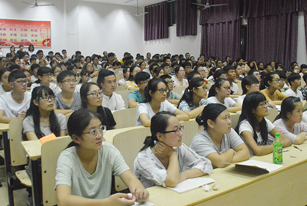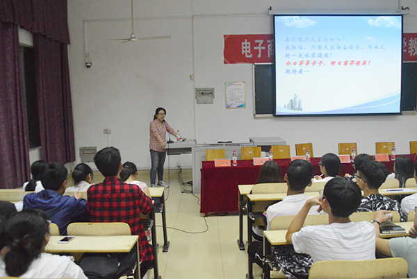 然后,王一平作新生入学教育第一讲。她通过我校宣传教育视频向在座新生简述了yl6809永利集团的办学历史、办学理念、取得成绩等内容,使新生对学校有了初步认识;通过PPT和自身经历就教学科研机构设置、电子商务学院党政机构、专业设置与发展、师资队伍、实习(训)基地等五个内容介绍我院详细情况。她表示,随着电商的快速发展及办学经验的累积,学院也在与时俱进,不断向前。