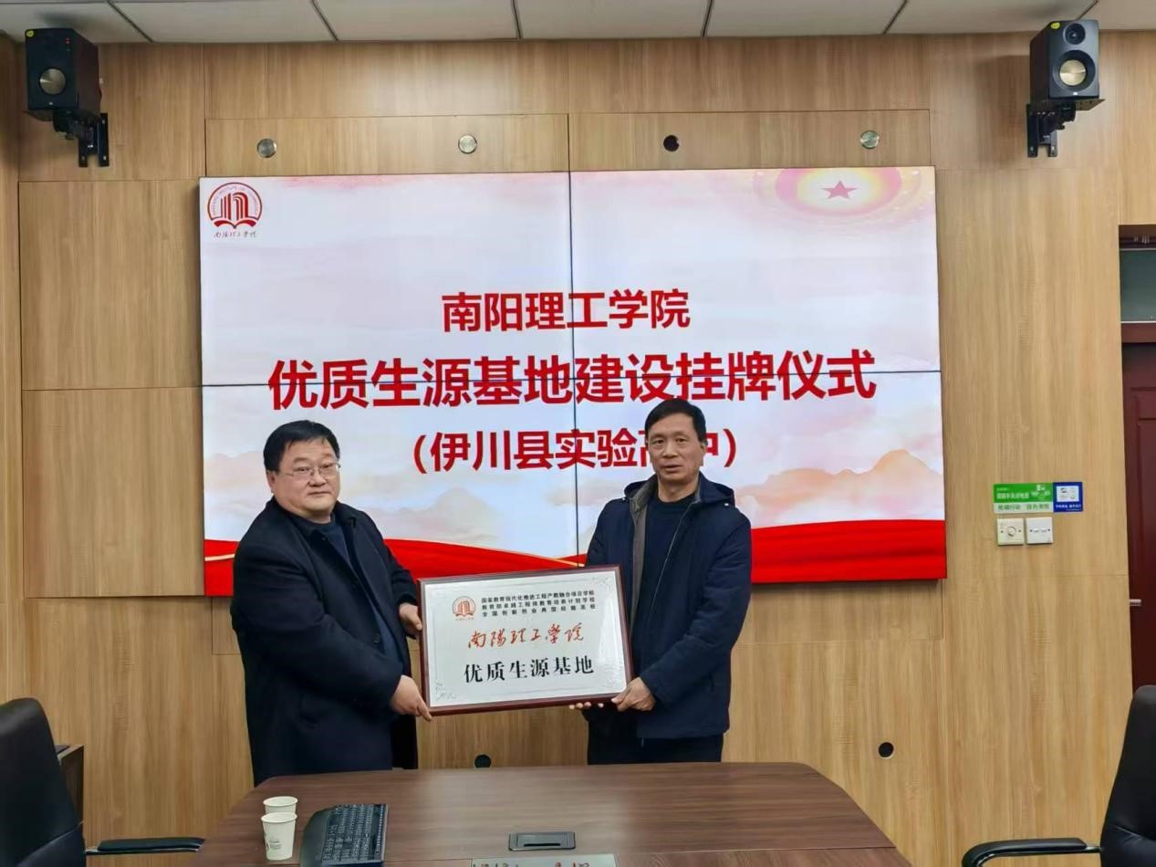 本网讯(特约记者/董博)为进一步加强与优质生源基地的合作,拓宽人才培养渠道,2月24日,yl6809永利官网集团党委书记闫合占一行前往洛阳市伊川县,走访当地多所重点高中,并签订《优质生源基地建设合作协议》,为合作高中授牌。