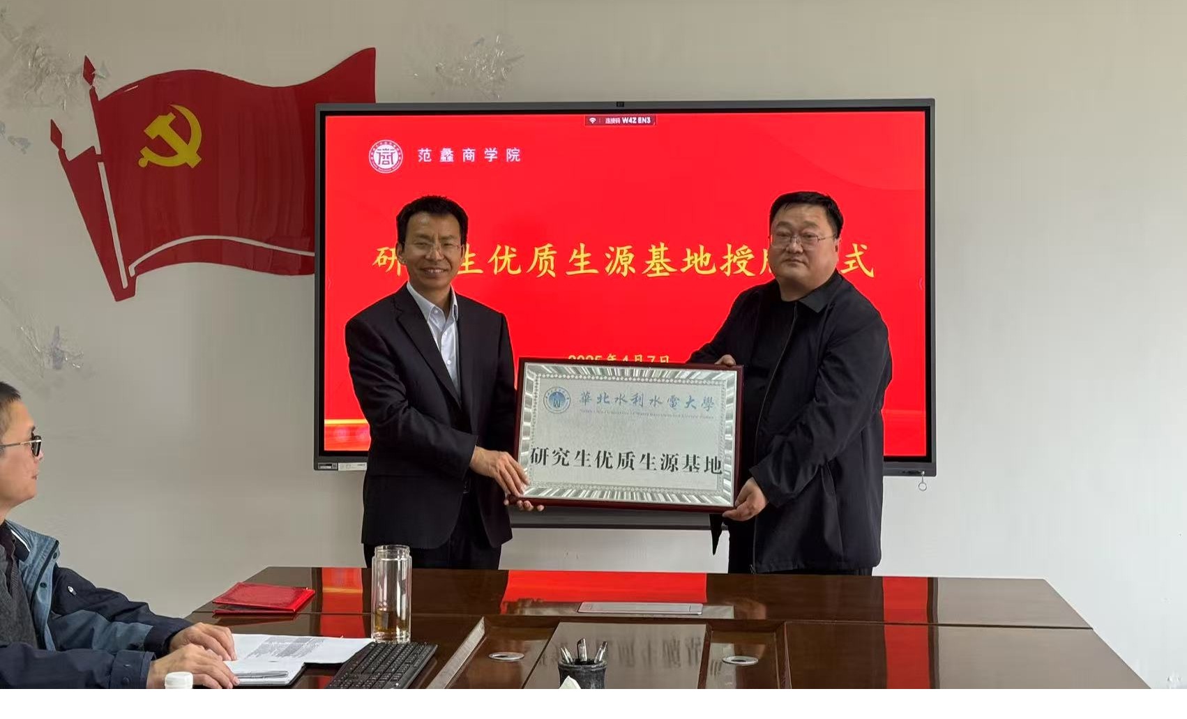 闫合占书记授“研究生优质生源基地”牌匾。
