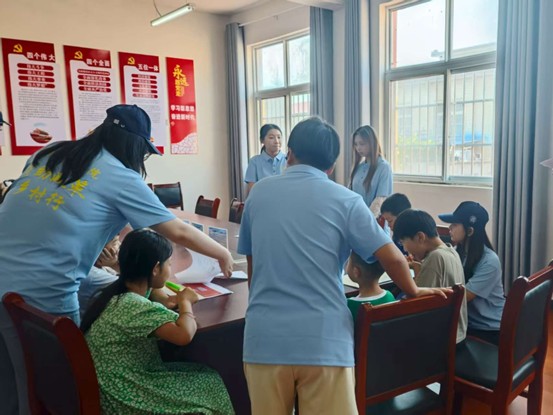 在姚庄三郎庙村,团队将资助政策宣传深度融入儿童关怀活动。通过开设精准化资助政策课堂,结合趣味体育与互动游戏,在丰富儿童暑期生活的同时,靶向普及国家助学政策。团队成员同步面向家长群体开展政策宣讲专项行动:播放助学贷款动画短片,生动解析"绿色通道"、国家助学金等政策要点;现场发放政策指南手册,针对家庭经济状况提供个性化入学方案咨询,有效破除困难学子就学顾虑。