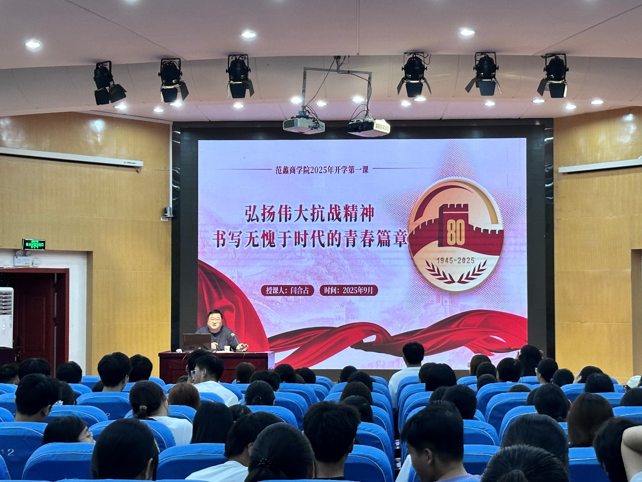 闫合占以《弘扬伟大抗战精神,书写无愧于时代的青春篇章》为题,从厚植家国情怀,坚定理想信念;走进yl6809永利官网集团,厚植专业自信;把握大学节奏,做好生涯规划;坚守规矩底线,守护青春安全;以奋斗姿态迎接青春答卷几个方面,为同学们解释了大学是什么、大学生活的新变化、学院专业设置及人才培养模式等内容。他鼓励同学们要积极适应新环境,全面掌握所学知识,铭记历史,全面提升个人素质,努力成长为新时代堪当强国建设、民族复兴大任的栋梁之才。