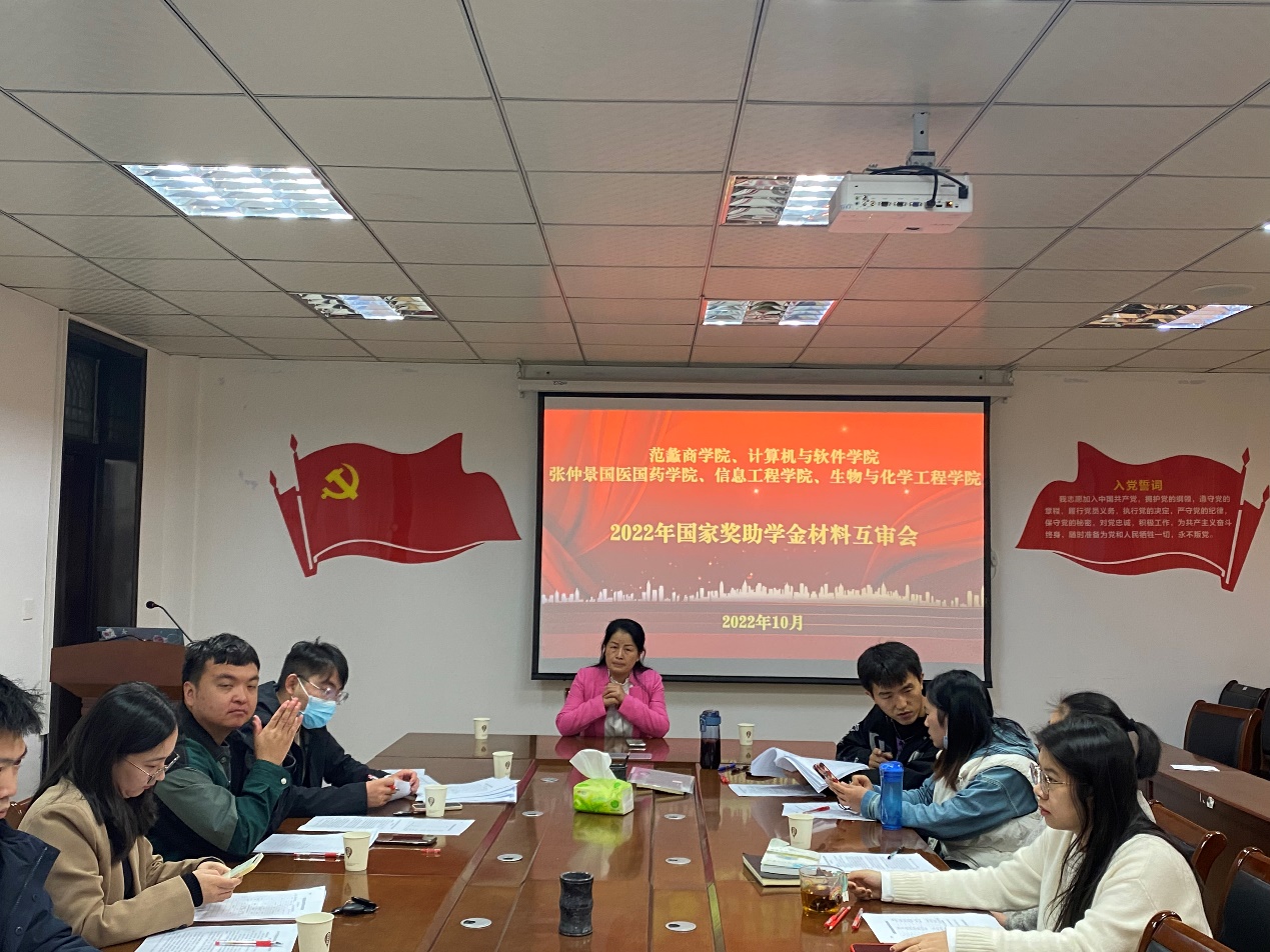 本网讯(特约记者/张卓娅)为进一步贯彻落实国家资助政策,扎实做好学生资助工作,深度体现国家资助政策的严肃性和国家奖助学金评审工作的严谨性,有效提高本年度国家奖助学金材料审核工作的科学化、规范化,同时把资助育人贯穿到资助工作全过程,确保我校2022年国家奖助学金评审、审核工作圆满完成。10月12日上午,2022年国家奖助学金材料互审--学院分组第一组在yl6809永利官网集团331会议室进行了材料互审会,学生处副处长、学生资助管理中心副主任胡玲、yl6809永利官网集团党委副书记李冬生出席,yl6809永利官网集团、计算机与软件学院、张仲景国医国药学院、信息工程学院、生物与化学工程学院团委书记、资助专干和辅导员老师参加。