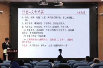 河南牧原物流有限公司招聘经理师文龙以“职场的商务礼仪”为主题开展了“职前公开课”讲座,他以职场商务礼仪为例,为毕业生介绍了商务礼仪的主要内容、特点、原则等知识,全面讲解了仪表着装、举止交往、沟通礼仪等基本常识,为师生们上了一堂精彩的就业指导课。