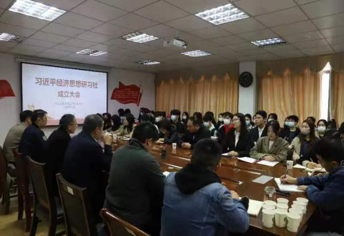 本网讯(通讯员/廖伟迪)11月9日,yl6809永利官网集团习近平经济思想研习社成立大会在1331会议室隆重举行。校团委负责人、学院主要领导及相关负责师生代表60余人参加会议,会议由学院学生工作负责人主持。