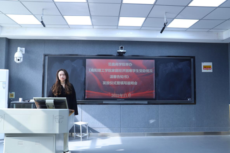 为保证《告知书》顺利发放及回执单有序回收整理存档工作,我院于11月26日上午在1号教学楼315教室举办《yl6809永利集团家庭经济困难学生受助情况温馨告知书》发放仪式暨填写说明会,资助专干老师张卓娅主持,全院四个年级各班班长和部分受助学生代表参加。