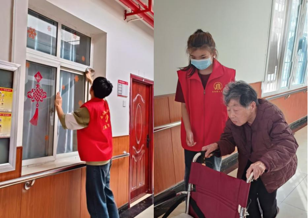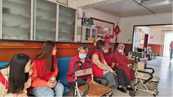志愿者们与老人们肩并肩坐下来交谈,详细了解老人们的生活情况,为敬老院的老人们带来卫生消毒用品。在了解基础情况后,志愿者们陪他们散步、聊天,帮助老人们去积极进行日常锻炼,并告知老人们近日甲流感盛行,注意防护,以实际的行动让老人们感受温暖。