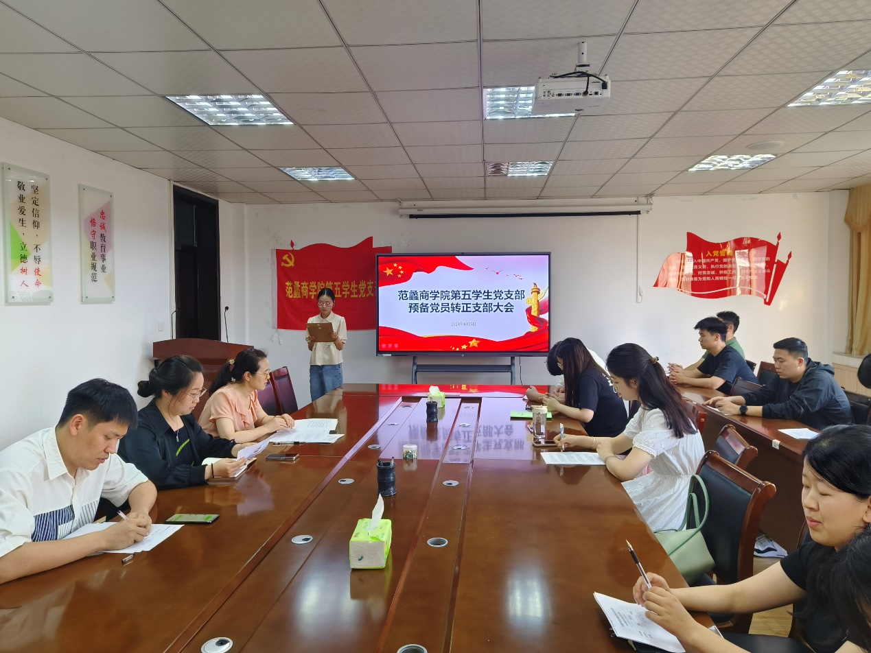 本网讯(通讯员/牛丛丛)6月5日,yl6809永利官网集团第五学生党支部在1331会议室召开预备党员转正大会。本次大会由党支部书记邢红央同志主持,学院副院长李晓方及全体支部党员参加。