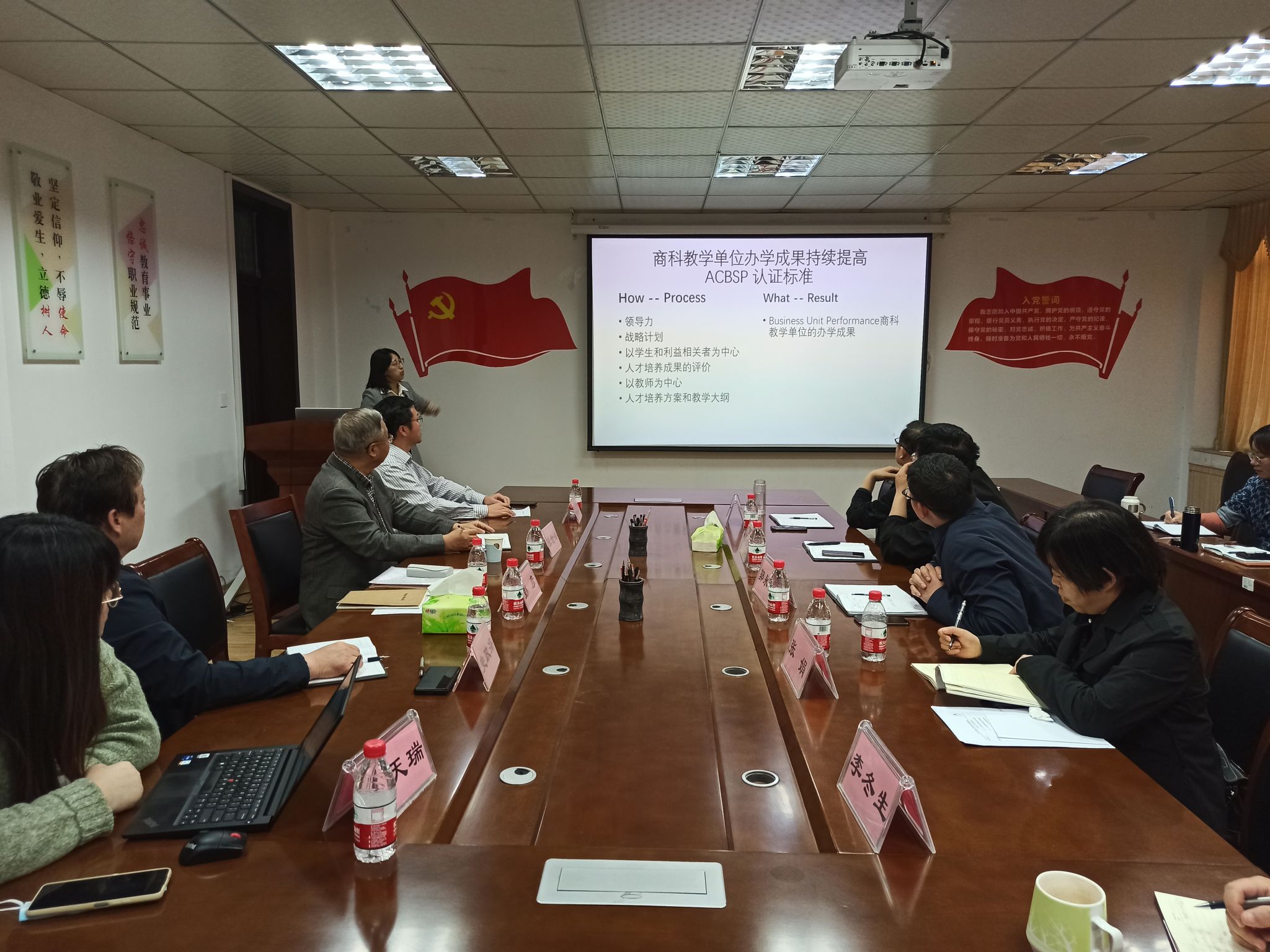 会议由yl6809永利官网集团院长吴战勇主持。yl6809永利官网集团副院长郭永奇从认证会员申请、利益相关者调查、培养方案分析、评价计划制定等方面全面汇报了一年来yl6809永利官网集团ACBSP认证工作开展的情况。